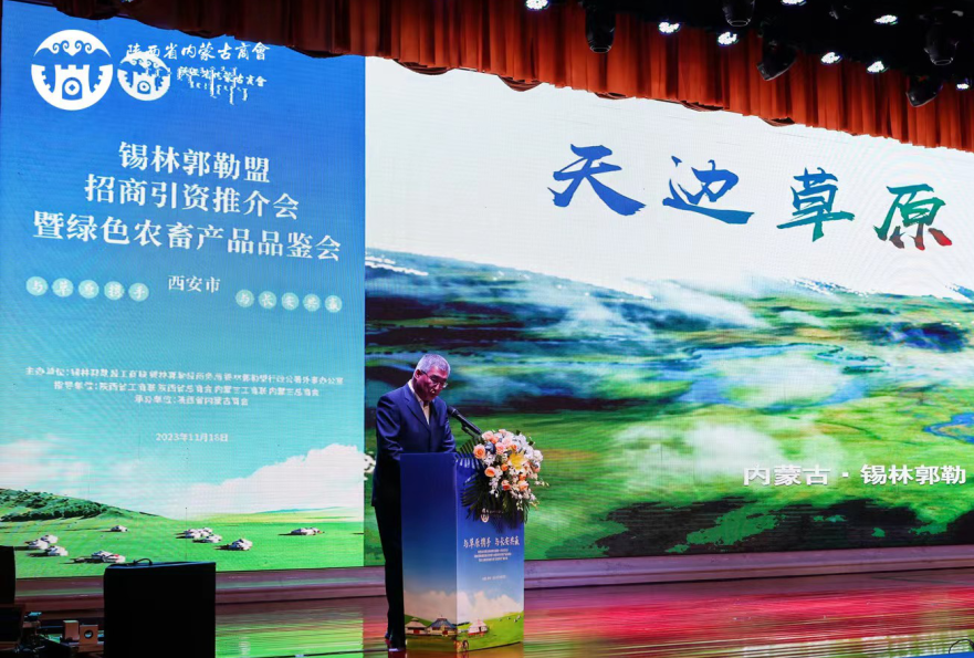 11月18日,由锡林郭勒盟工商联、锡林郭勒盟商务局、锡林郭勒盟行政公署外事办公室联合主办的锡林郭勒盟招商引资推介会暨绿色农畜产品品鉴会在西安市隆重举行。内蒙古工商联副主席白春艳、内蒙古自治区工商联(总商会)副会长宋和平、陕西省工商联二级巡视员李向军等相关领导应邀出席。本次活动由陕西省内蒙古商会承办,锡盟与陕西两地商界代表共500余人参会,深入交流,共谋发展。