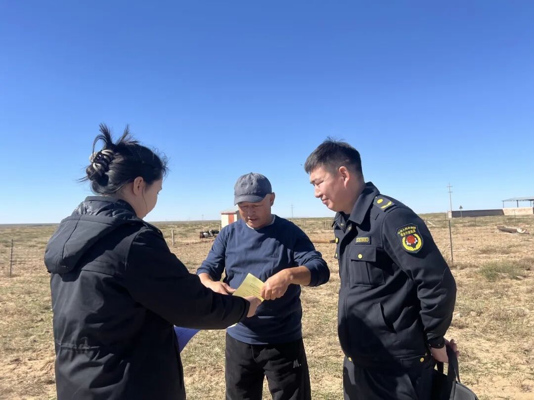 镶黄旗深入践行“生态优先、绿色发展”理念,把做好禁牧工作作为打好沙地歼灭战基础,以更大力度、更严要求、更实举措,贯彻落实习近平生态文明思想,以绿色为底色推进镶黄旗经济社会高质量发展。镶黄旗翁贡乌拉苏木浑善达克沙地作业区共涉及草场5.6万亩,其中3.6万亩草牧场列入防沙治沙和风电光伏一体化工程沙地治理项目区(涉及牧户33户115人),2万亩草场列入国家西部腹地浑善达克沙地治理项目区(涉及牧户27户74人)。为做好浑善达克沙地禁牧区管护工作,翁贡乌拉苏木组织综合行政执法队深入沙地治理项目区,以“执法监督+精准普法”相结合的方式,全面落实防沙治沙和风电光伏一体化工程项目区禁牧工作监管责任,并通过“线上宣传倡议+线下精准普法”的方式推动作业区牧户转变思想,提高认识。通过鼓励出栏、草牧场流转和承包的方式,积极推进治沙作业区牲畜清场。在镶黄旗翁贡乌拉苏木阿日舒特嘎查、浩伊尔胡都嘎嘎查草原生态修复治理项目区、防沙治沙风电光伏一体化工程项目的禁牧区,苏木综合行政执法队就牲畜清场情况进行严格巡查调查,并深入牧户,积极传播生态保护理念,同时严密核查项目覆盖区域内牧民的牲畜出栏状况,确保无一例违规放牧行为发生,坚决维护项目区域的生态修复工作。“为做好浑善达克沙地治理区执法监督工作落实到位,我队自今年8月开始,出动执法人员分组对浑善达克沙地治理作业区开展监督检查工作,对涉及的五个嘎查浑善达克沙地治理项目禁牧区牲畜清场情况进行监督检查,截至目前,累计出动巡查执法人员151人次,车辆42台次,其中入户宣传100余次,下达责令整改通知书共17份,现涉及治理区的牧户已全部清理牲畜。下一步,我队持续对浑善达克沙地治理作业区开展常态化监督检查,一旦发现违规放牧等行为,严格按照相关法律法规,做到有法必依、执法必严、违法必究。”镶黄旗翁贡乌拉苏木综合行政执法队队长阿木古楞说。以引导产业转型作为稳定增收的落脚点。在相关部门的技术服务下,翁贡乌拉苏木涉及沙区的嘎查合作组织通过“合作社+牧民”模式,优先吸纳本嘎查牧民自愿就近参与防沙治沙,以先建后补、以工代赈的方式,通过参与网围栏建设、铺设沙障和后期管护等方式获得劳务报酬,有效解决了治沙作业区牧民经济来源问题,更大限度共享禁牧、生态治理带来的经济效益,以实际行动践行“绿水青山就是金山银山”的发展理念,为打赢沙地歼灭战贡献力量。