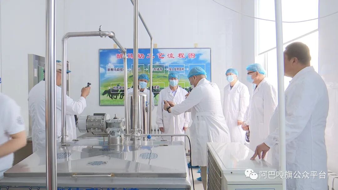 在牧区现代化马产业——照富经贸有限责任公司阿巴嘎策格(马奶)现代加工流水线考察