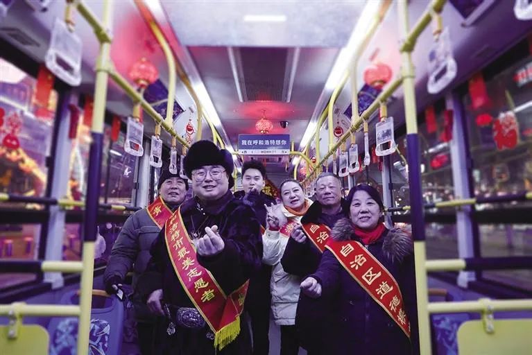 1月28日晚8点,几辆车身装饰着绚烂灯带的公交车从大召广场准时发出,沿着通道街、中山西路、锡林北路、新华大街一路向东缓缓行驶。